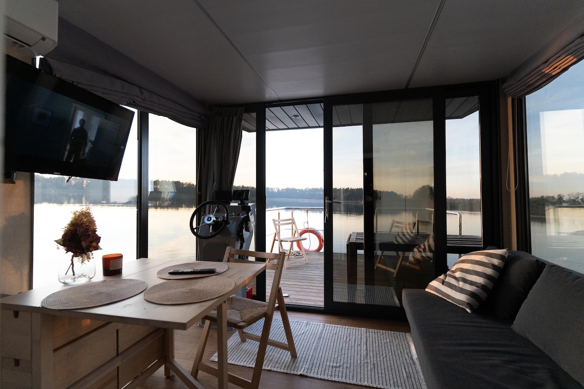 Ένα άνετο σπίτι πάνω στο νερό, όπου τα ηλιοβασιλέματα είναι μαγευτικά Φανταστείτε να κάθεστε στη βεράντα με μια κούπα ζεστό καφέ και τη λίμνη να αντανακλά τις τελευταίες ακτίνες του ήλιου. Ο αέρας μυρίζει δάσος, η σιωπή διακόπτεται μόνο από το κελάηδισμα των πουλιών και ο χρόνος επιβραδύνεται... Έτσι είναι μια βραδιά στο εξοχικό μας στα νερά του Pałuki: ένα μέρος όπου η φύση, η ηρεμία και ο σχεδιασμός συναντιούνται σε τέλεια αρμονία. Ο τέλειος χώρος για να κάνετε ένα διάλειμμα από την καθημερινή σας βιασύνη και να ξεκουραστείτε πραγματικά.