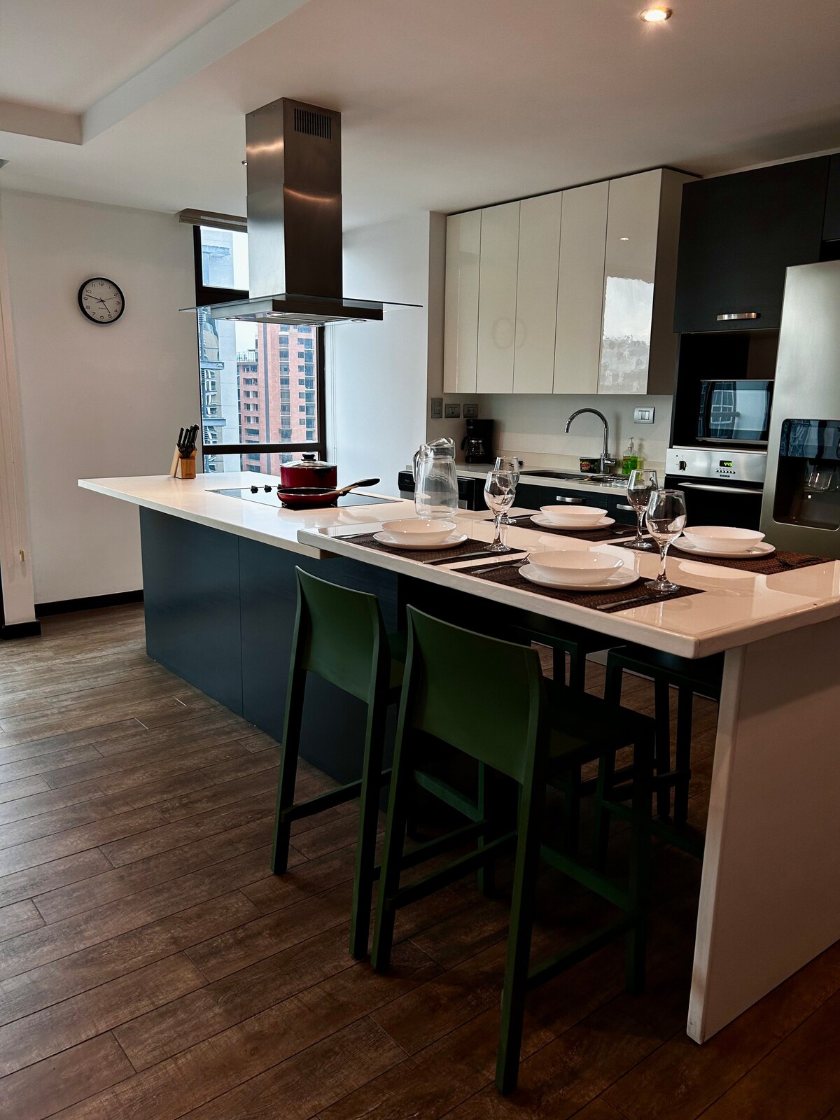 Άνετη και κομψή σουίτα στην καρδιά της ζώνης 10, λίγα βήματα από εμπορικά κέντρα, εστιατόρια, νοσοκομεία, πανεπιστήμια, το αεροδρόμιο και τα κύρια εταιρικά κτίρια της πόλης. Σουίτα με πολυτελή διακόσμηση, μπαλκόνι, WiFi, Smart TV και πλήρως εξοπλισμένο ιδιωτικό μπάνιο, εξοπλισμένη κουζίνα και ασφαλή πάρκινγκ στο υπόγειο του κτιρίου. Κοινόχρηστοι χώροι με πισίνα, γυμναστήριο, παιδική χαρά και διάφορες άλλες ανέσεις.