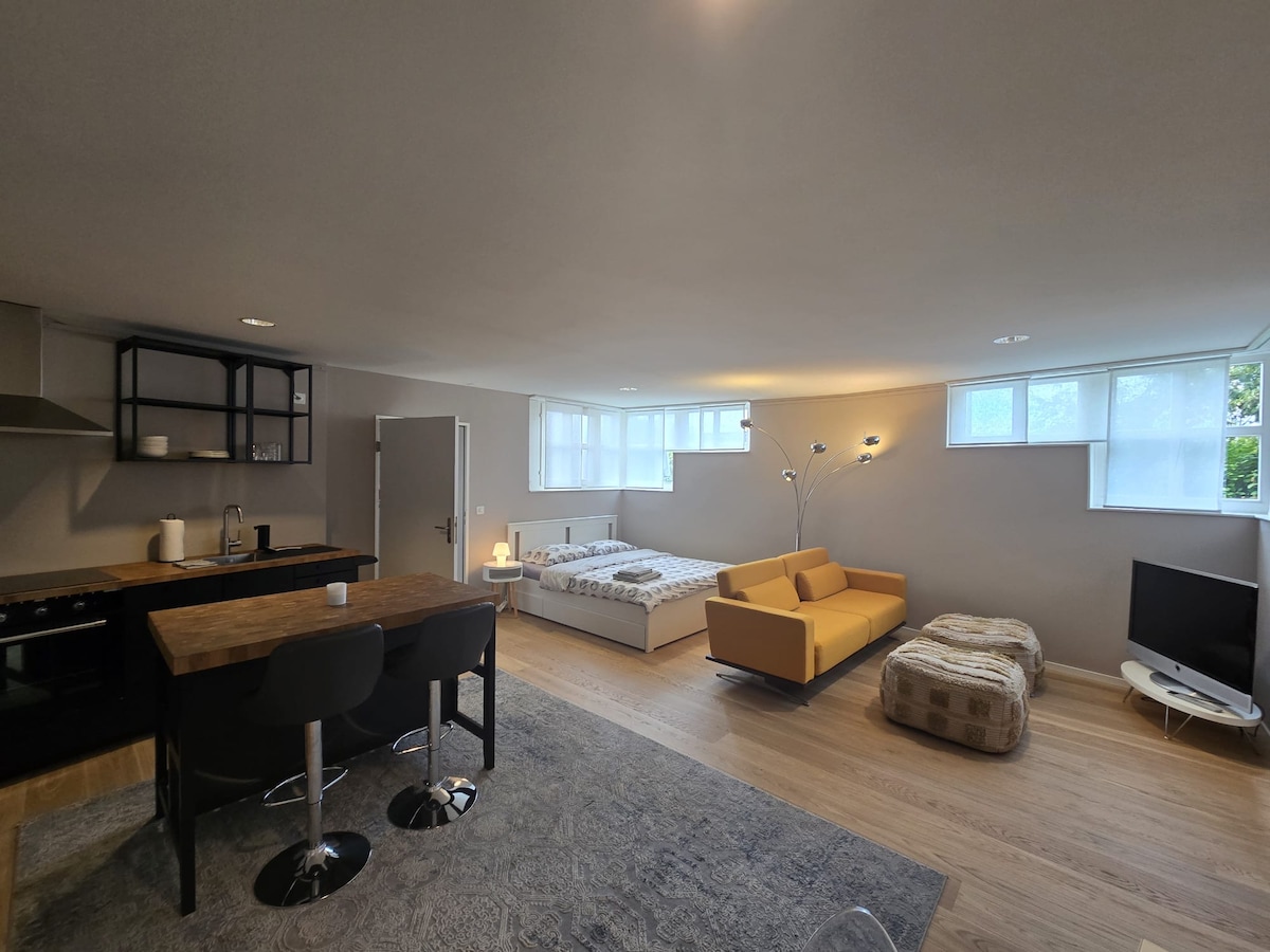Αυτό το πρόσφατα ανακαινισμένο στούντιο (2026) συνδυάζει μοντέρνο σχεδιασμό, άνεση και ασυναγώνιστη τοποθεσία – ιδανικό για επαγγελματίες ή διαμονές μεγαλύτερης διάρκειας. Το διαμέρισμα διαθέτει ενιαίο καθιστικό με υπνοδωμάτιο/ντουλάπα και πλήρως εξοπλισμένη κουζίνα. Ολοκαίνουργια έπιπλα (2026). Πλήρως εξοπλισμένη κουζίνα Θέρμανση δαπέδου Στόρια συσκότισης WiFi Ασανσέρ στο κτίριο Διατίθεται χώρος στάθμευσης κατόπιν αιτήματος
